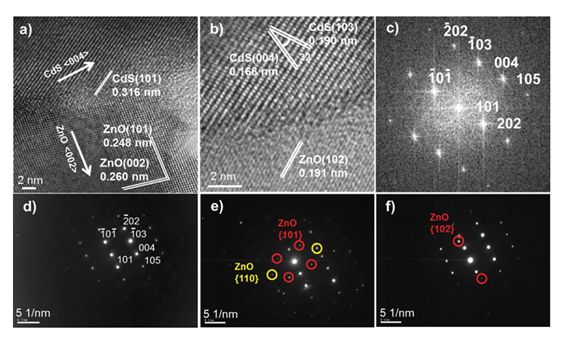 圖3:CdS/ZnO樹(shù)枝狀異質(zhì)結(jié)在TEM下的結(jié)構(gòu)表征。
