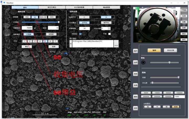 三、臺式掃描電鏡切換SE模式拍攝圖片方法