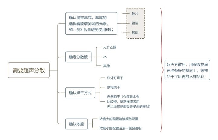 3.粉末樣品。方式一是直接用導電膠粘在樣品臺上測試;方式二是乙醇分散制樣,取少量樣品于離心管中,加入一定量無水乙醇或者水,室溫超聲五到十分鐘,超聲后采用液體的制樣方式制樣即可。